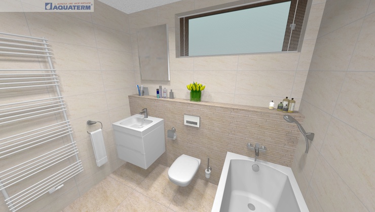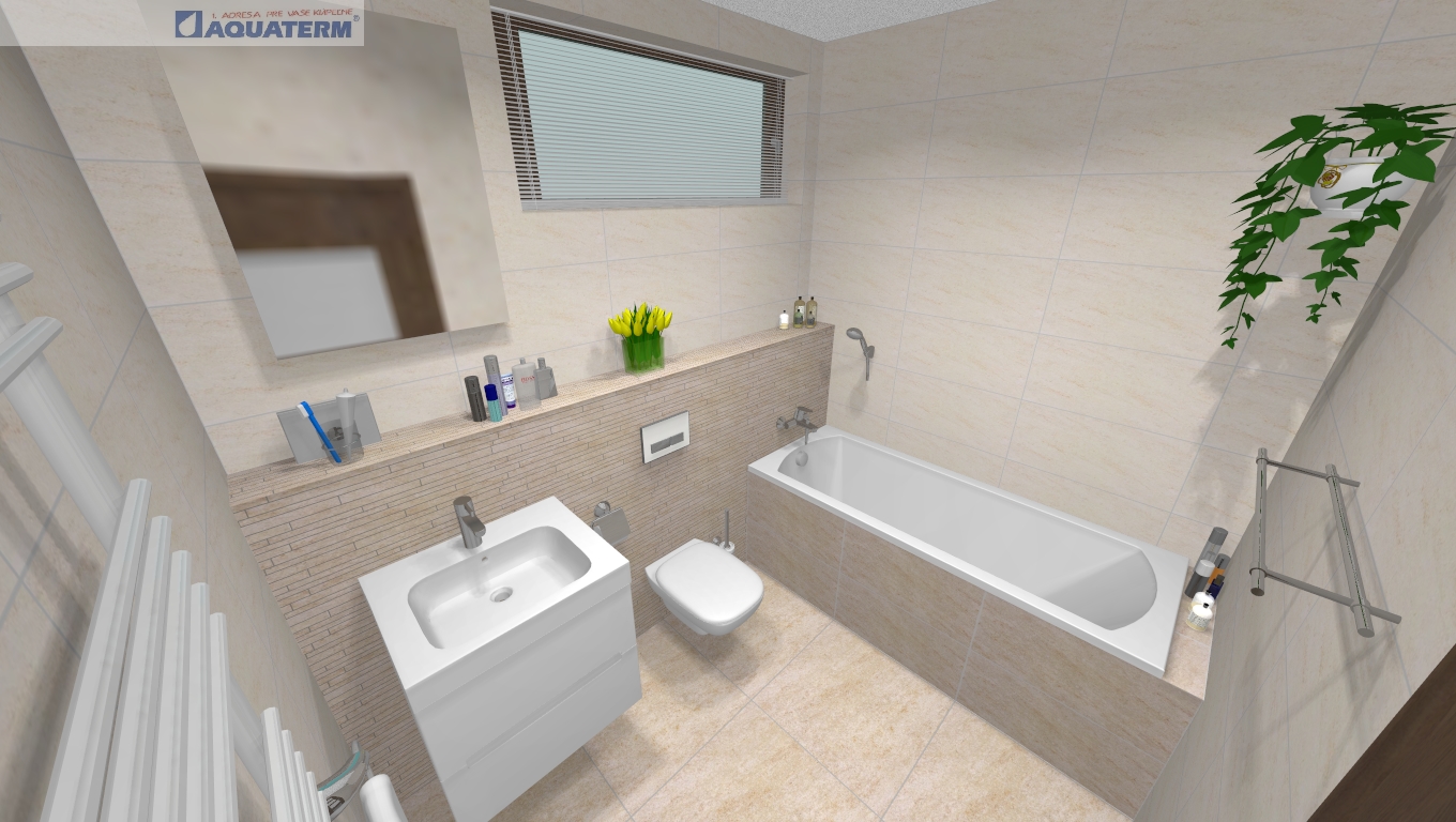 Kúpeľne s menším rozmerom nie sú “odsúdené” na rýchle sprchy. V tejto 3D vizualizácii sme vybrali pravouhlú vaňu Rekord (160cm) a s dostatočným priestorom pre toaletné potreby. Kvalitná vaňa s extra hladkým povrchom sa ľahko udržuje čistá a je na ňu dokonca 7-ročná záruka.
