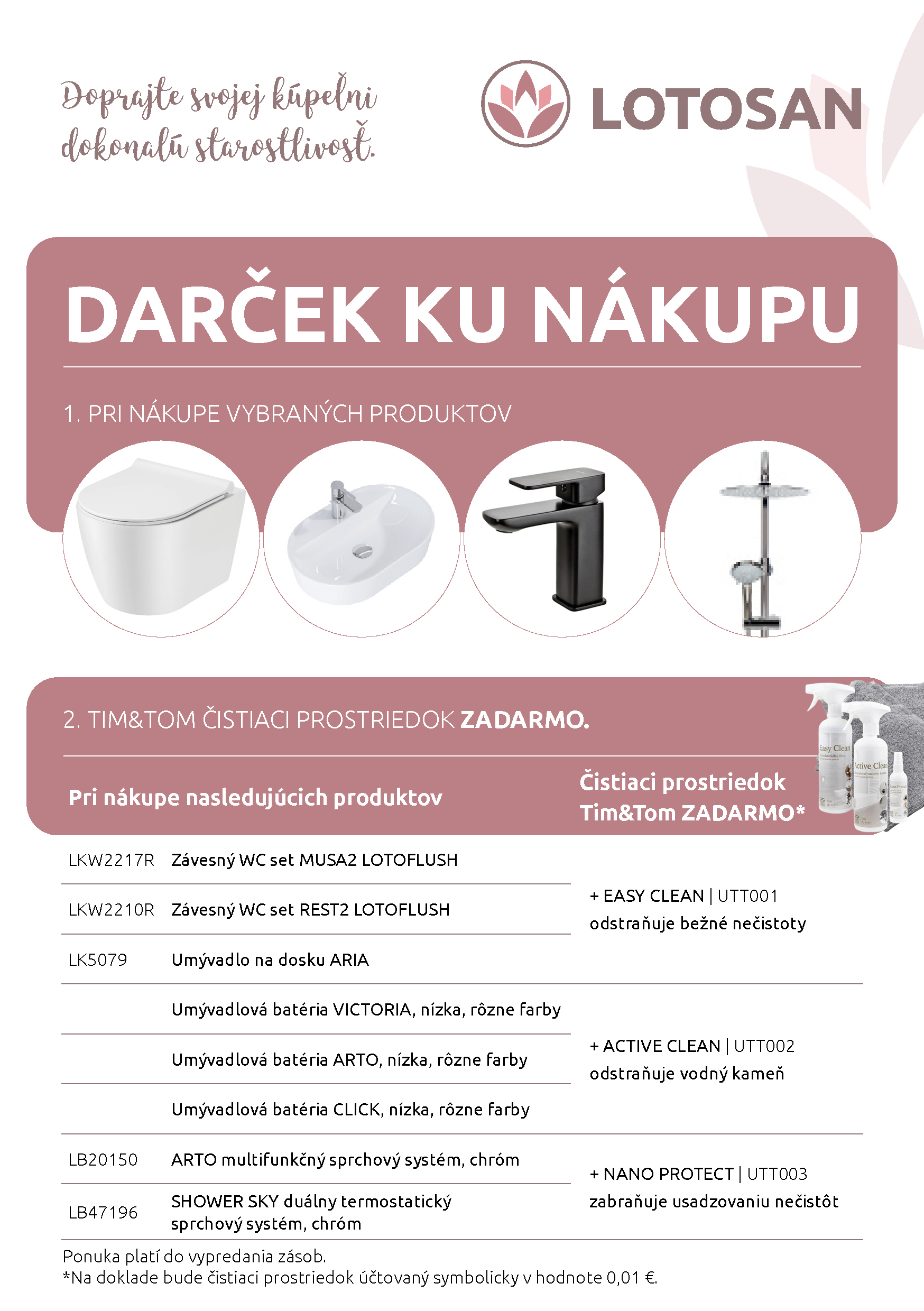 A aby bola starostlivosť o kúpeľňu ešte jednoduchšia, ku vybraným produktom LOTOSAN od nás teraz dostanete darček – čistiaci prostriedok Tim&Tom, ktorý vám pomôže udržiavať vašu kúpeľňu žiarivo čistú.