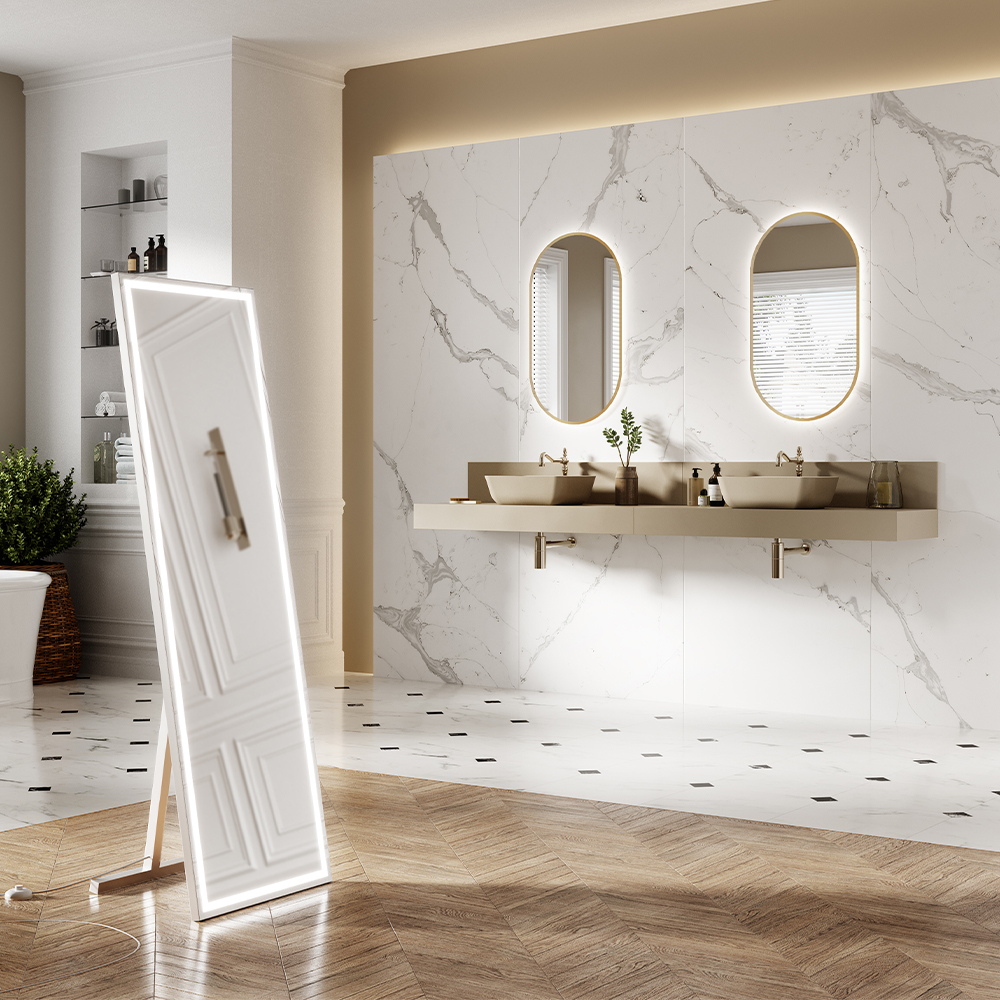 Zrkadlo s LED podsvietením, čierny rám, farba svetla neutrálna 5700 K, svietivosť 820 lúmenov, stupeň ochrany IP44, 52 x 92 x hĺbka 2,4 cm, hrúbka skla 0,4 cm