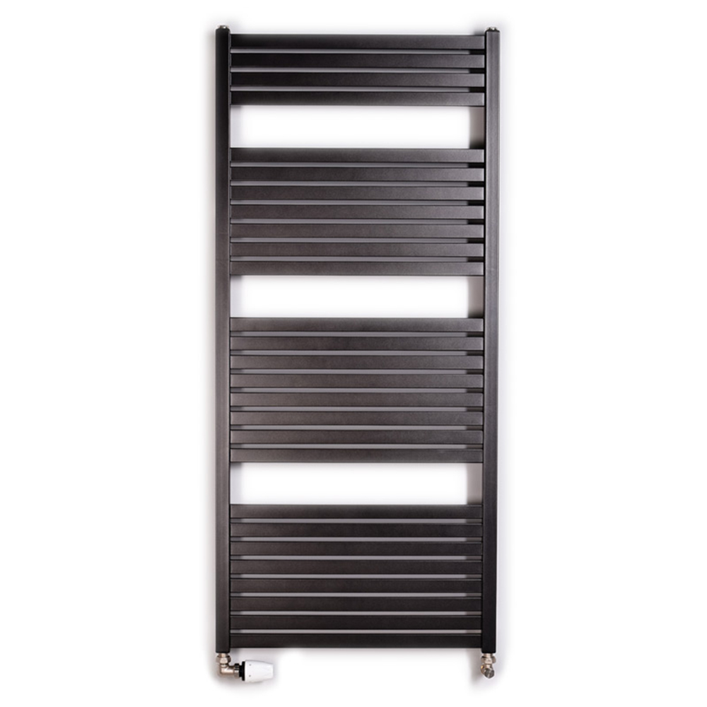 Hranatý rebríkový rádiátor - oceľové štvorhranné vertikálne tyče 30 x 30 mm s horizontálnymi štvorhrannými rúrkami 30 x 15 mm, maximálna prevádzková teplota 110 °C, zapojenie do centrálneho kúrenia (pripojenie nie je súčasťou rebríkového radiátora), kombinované kúrenie, samostatný elektrický radiátor (vykurovacia tyč nie je súčasťou rebríkového radiátora). Možnosť kombinovať s elektrickou vykurovacou tyčou 800 W
