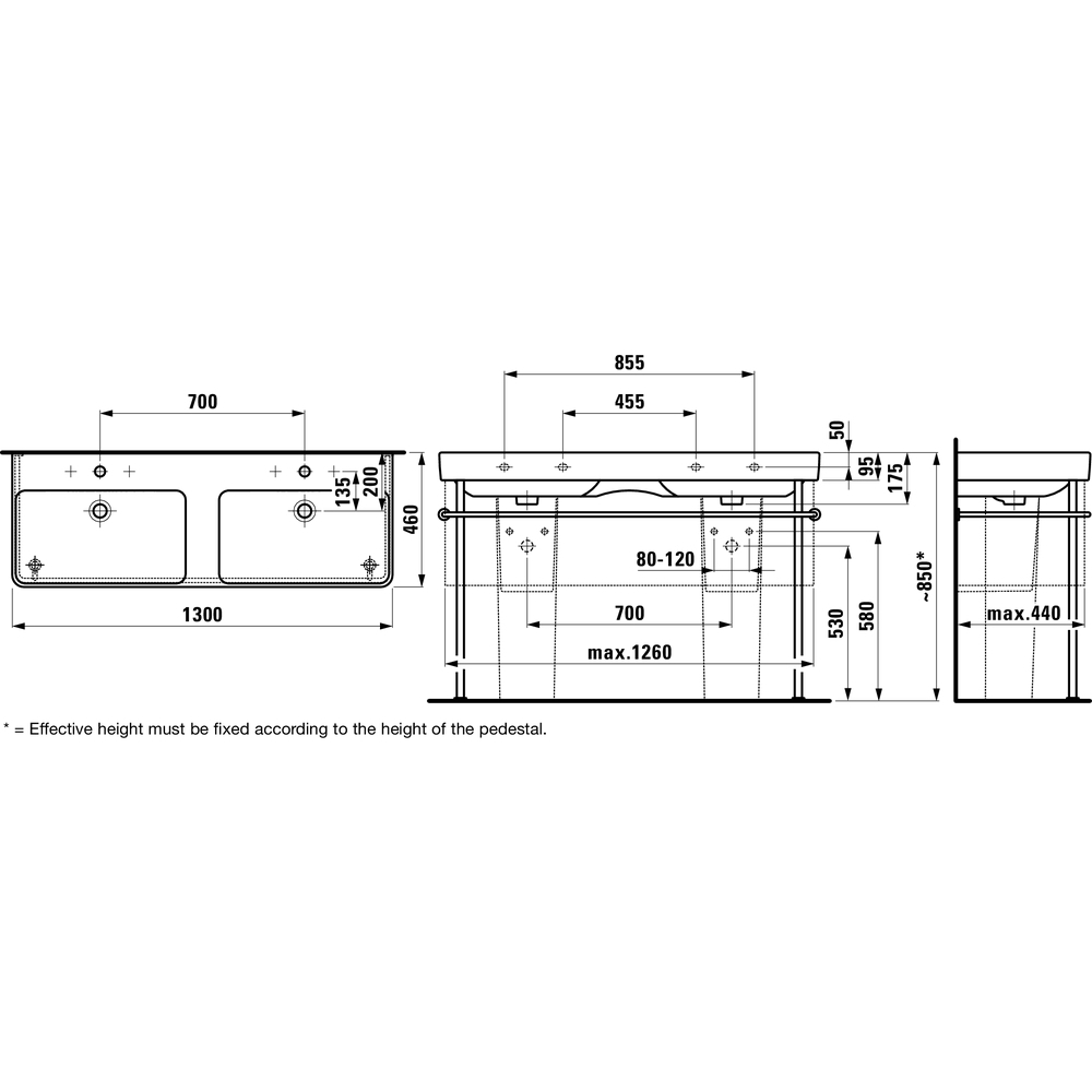 LAUFEN PRO S nábytkové dvojumývadlo s 3 otvormi pre batériu, LCC