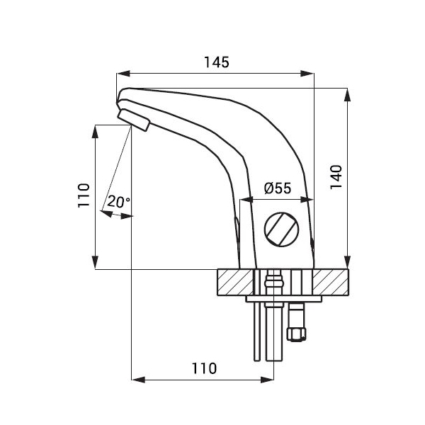 Výtokové ramienko s reguláciou teploty a elektronikou, elektromagnetický ventil (2 ks), prepojovacie hadice, rohový ventil s filtrom a spätnou klapkou (2 ks). Úsporný perlátor, prietok 6 l/min. Je určená pre prívod teplej a studenej vody, nastavenie teploty páčkou